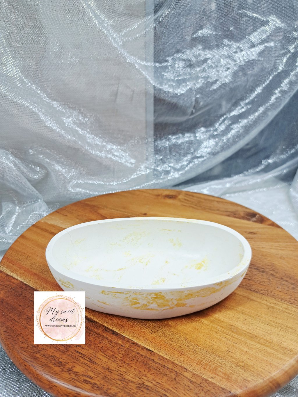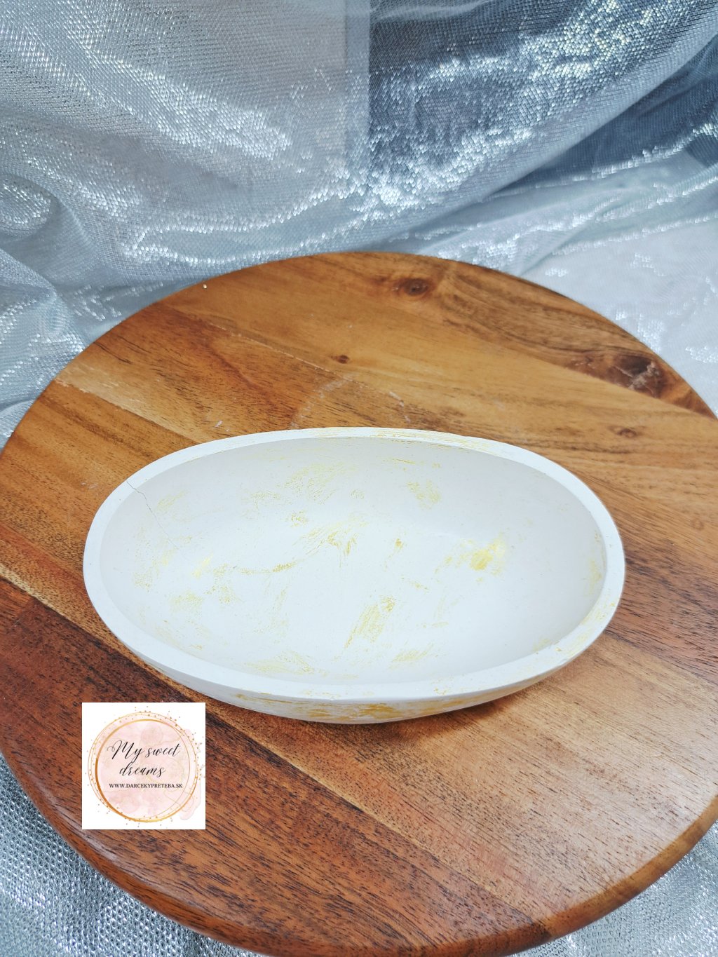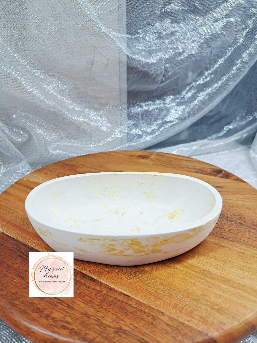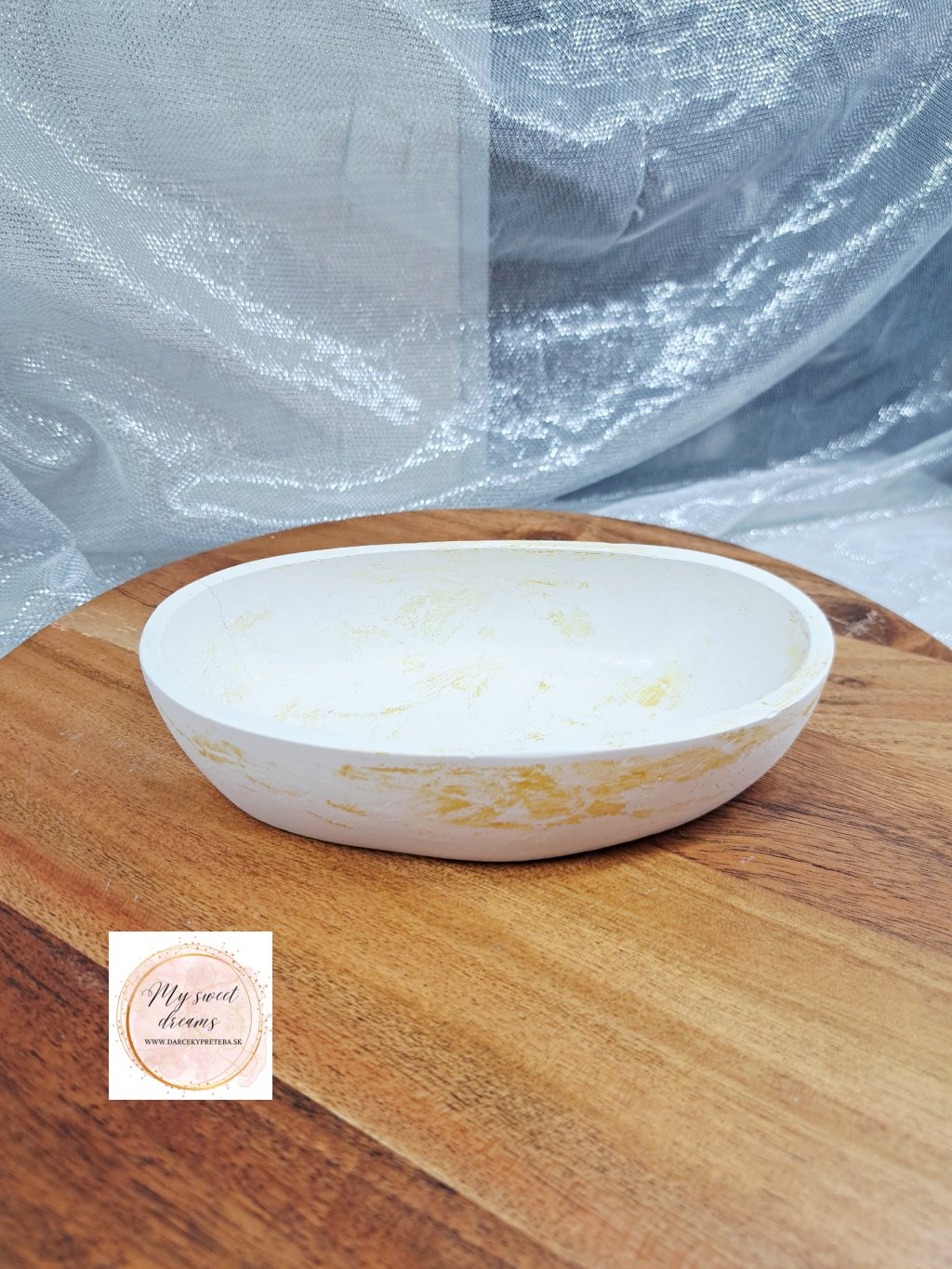 Miska loďka z keramickej sádry zo šírkou 15cm a hĺbka 8,5cm vo farbe natur alebo natur zlatá
