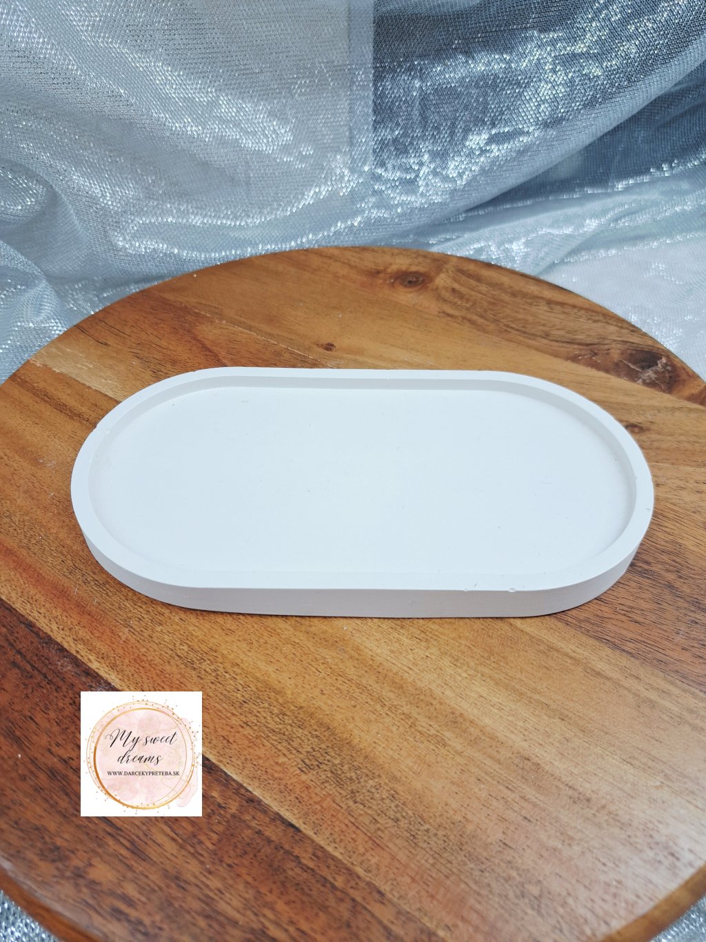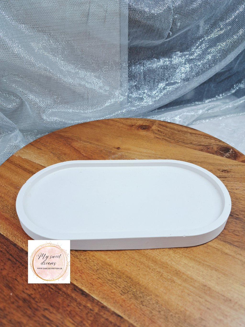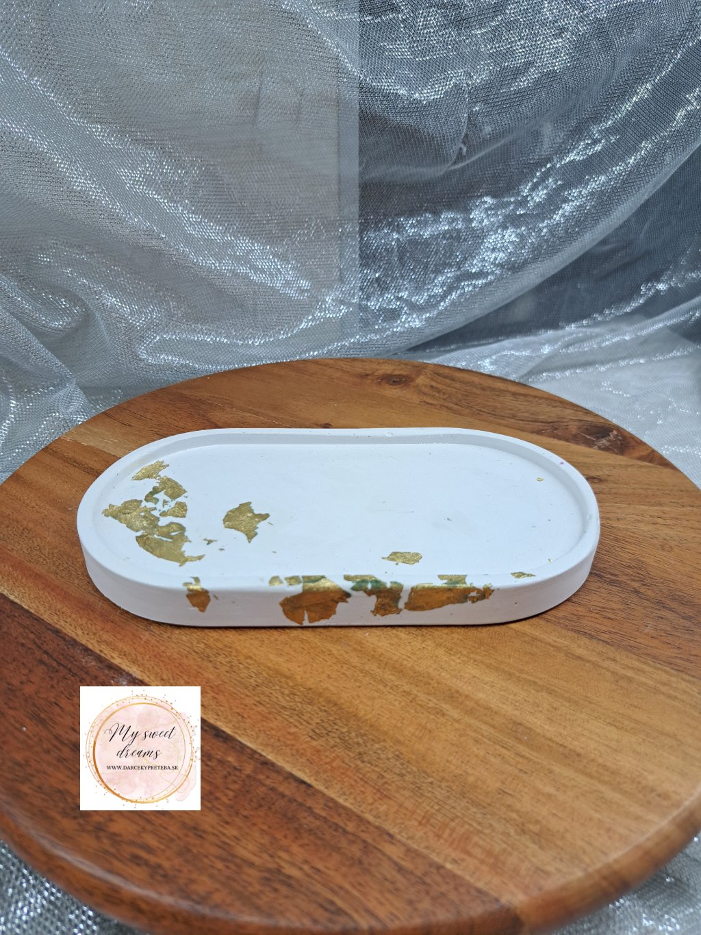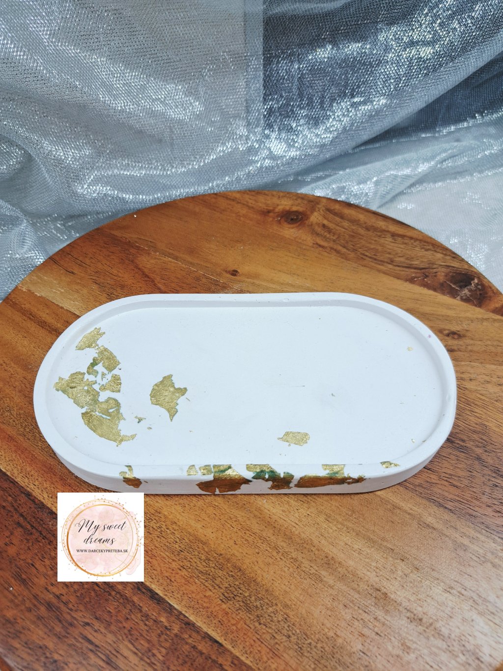 Podnos z keramickej sádry v prírodnej farbe alebo prírodná a zlatá . Šírka podnosu je 17,5cm a hĺbka je 9cm