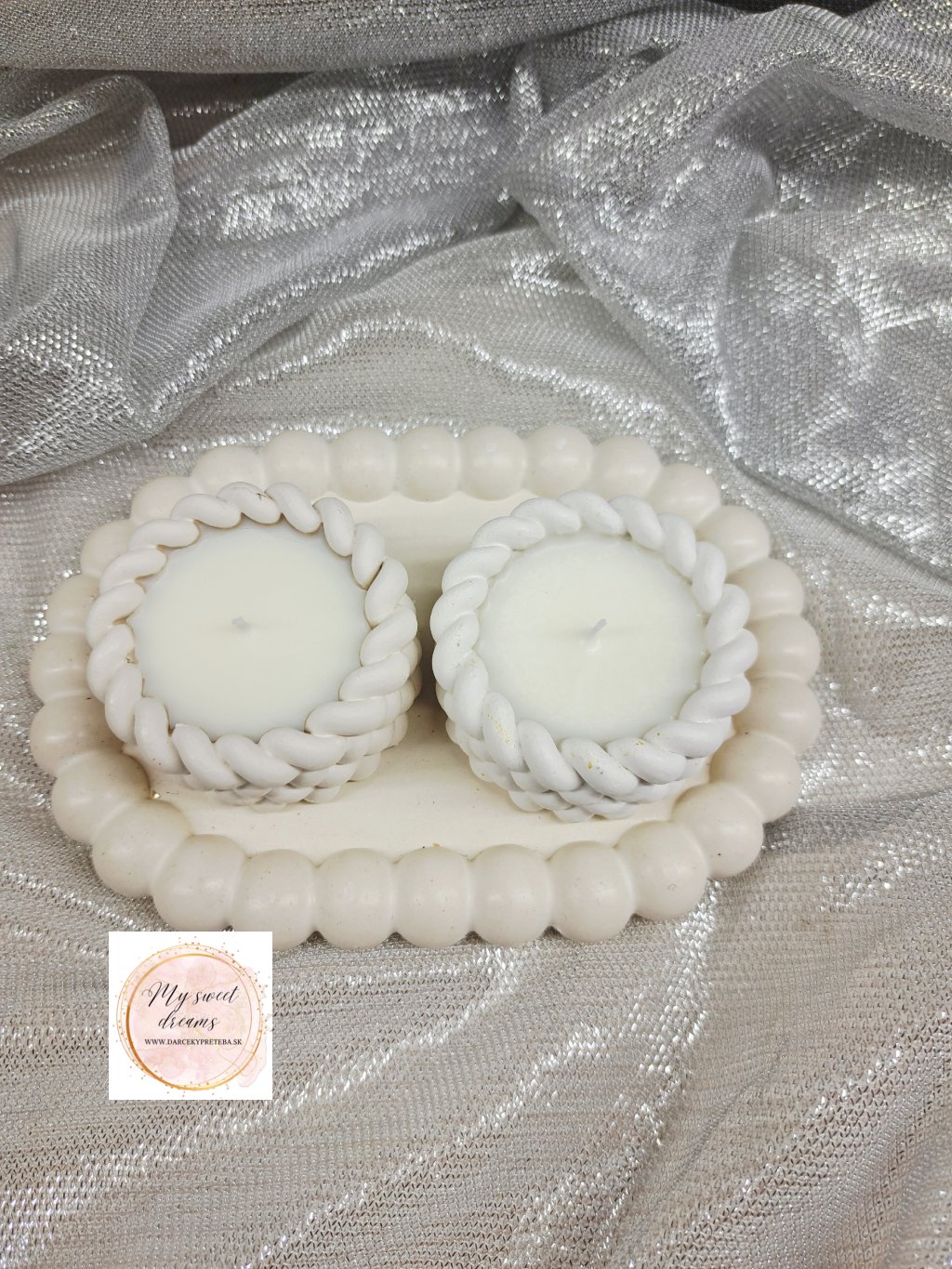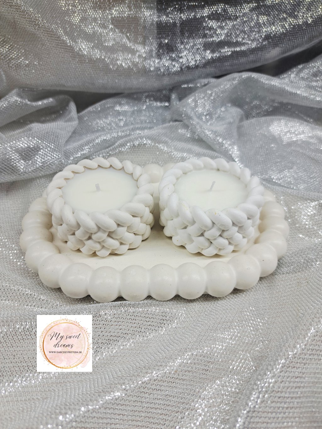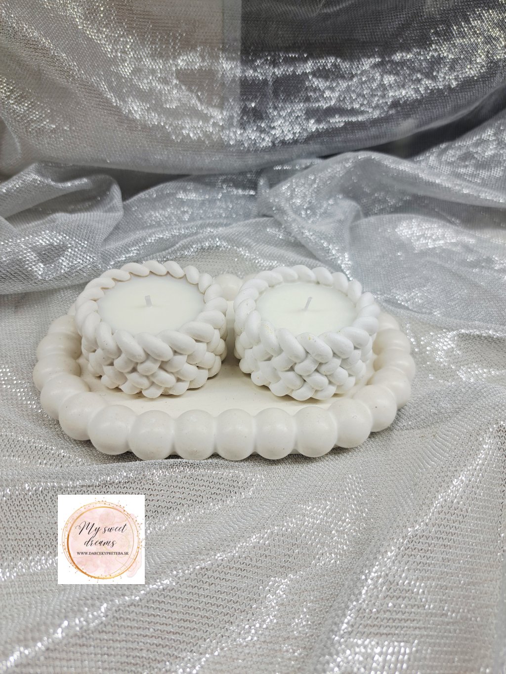 Priemer malej pletenej sviečky je 5cm a výška 2cm